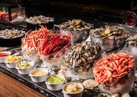 Free for under 5 years old, highly rated by customers. The oysters are big and fresh, and the long-legged crabs and lobsters are also very sweet and delicious. The foie gras and dessert is excellent.