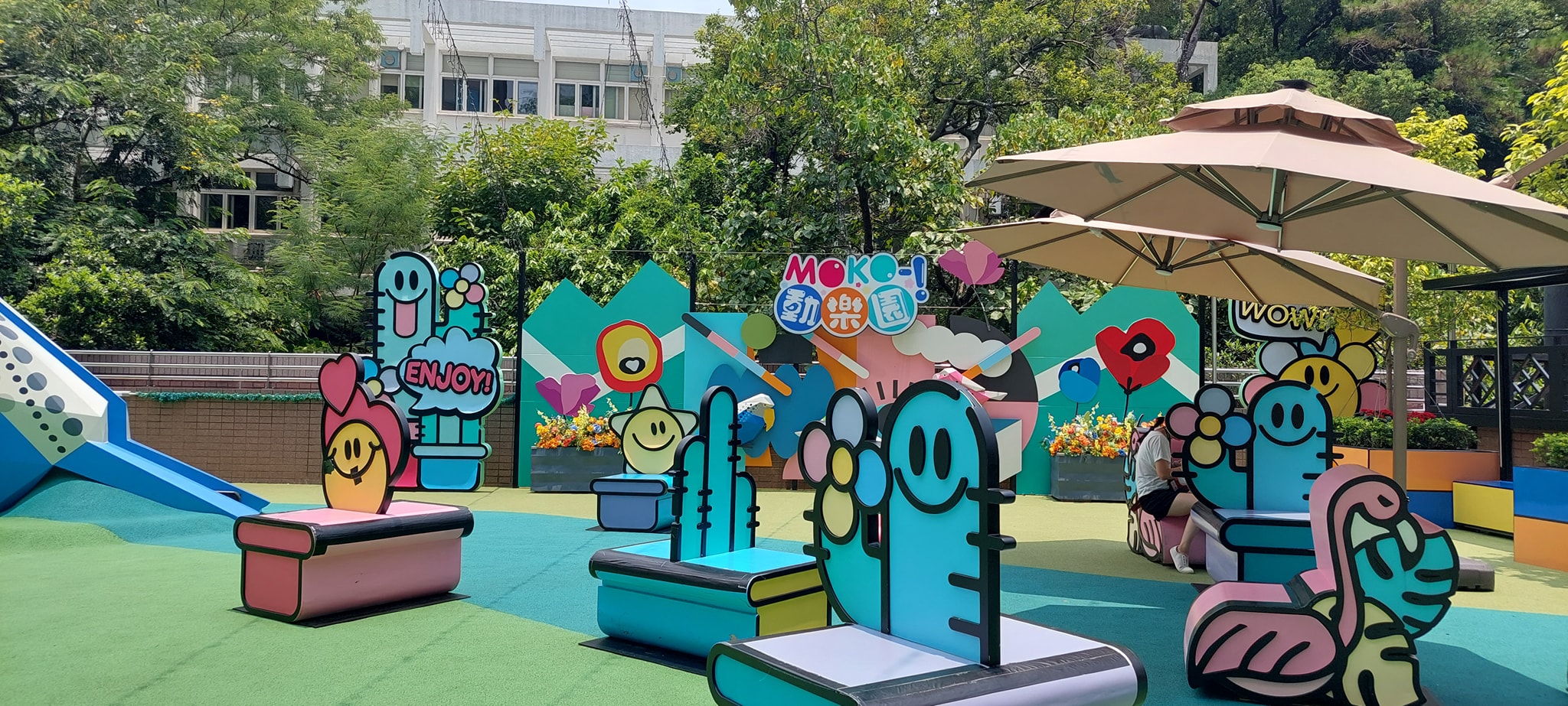 新世紀廣場MOKO全新戶外兒童遊樂場「MOKO 動樂園!」特設4大專區,提供多項玩樂、休憩及打卡設施。其設計意念取自旺角雀仔街及花墟,團隊利用雀鳥及花卉元素,將鸚鵡們等小角色融入遊樂設施中,營造充滿香港本地特色的兒童樂園!