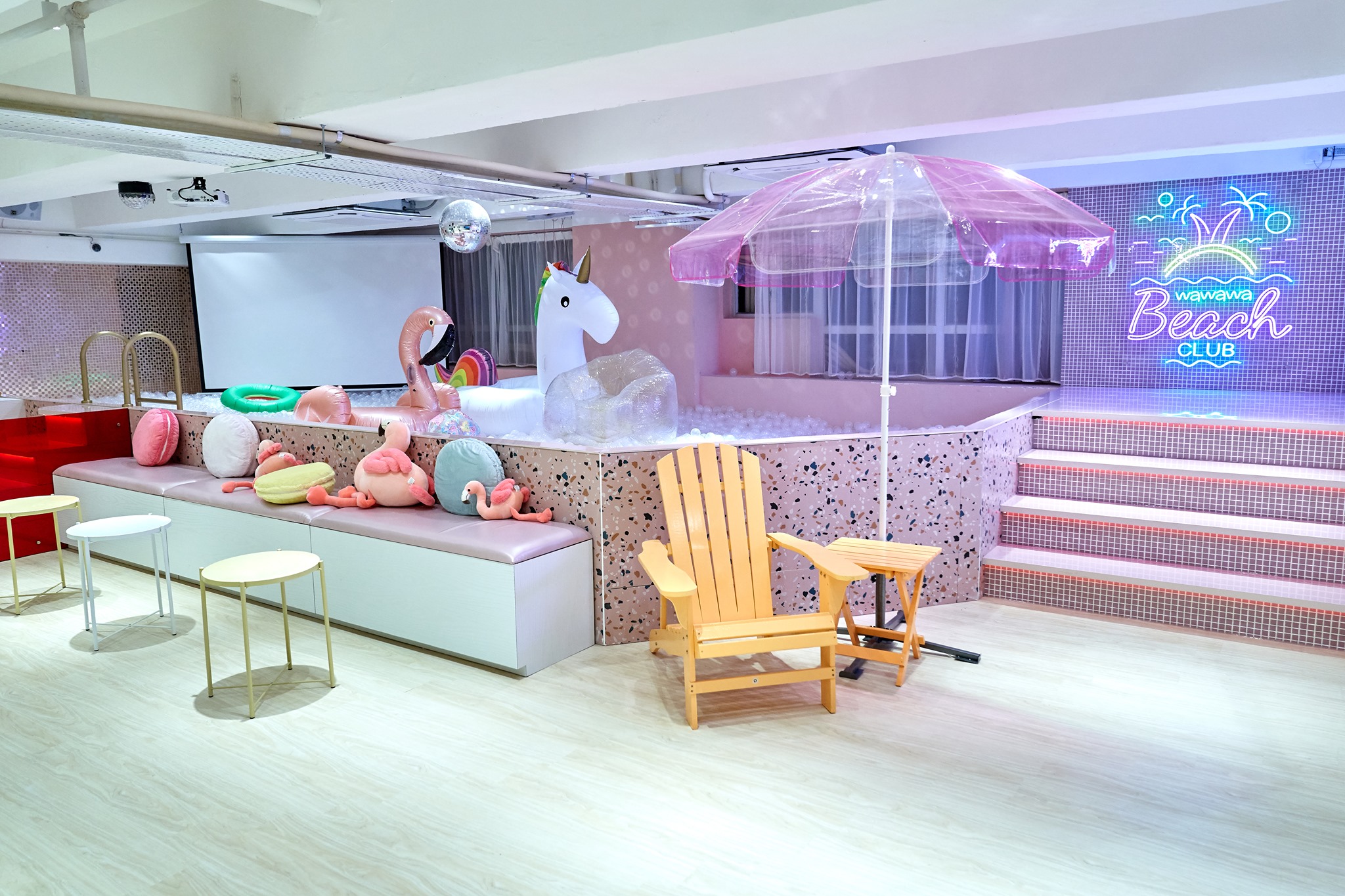 幫小朋友影靚相,爸媽就最鍾意!這場地一樣有Party Room必備的打卡位,田園風Glamping Area,或粉紅少女風的Pool Side Party,及兩個變色波波池,家長一定影到心水靚相。此外,場地更特別設有育嬰室,方便媽媽照顧BB或餵奶,體貼初生BB媽媽需要